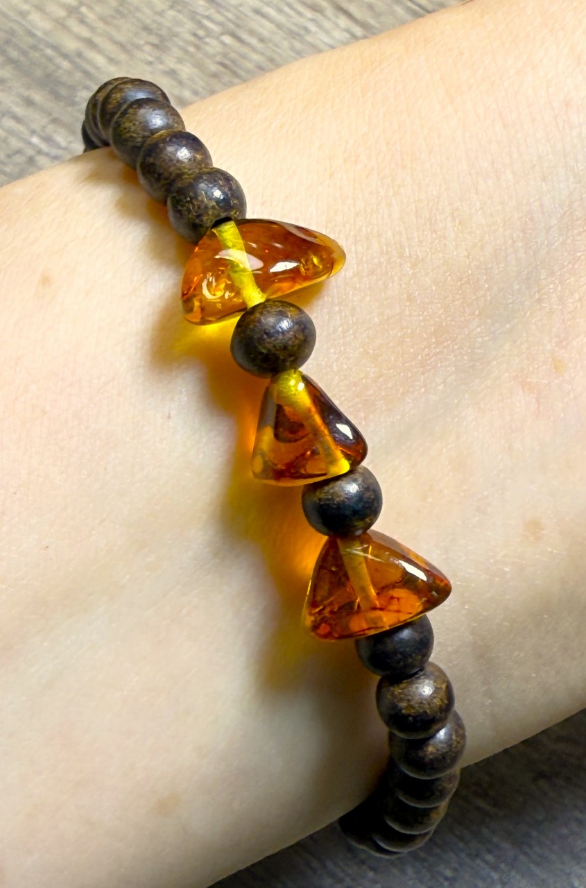 三粒不規則花柏蜜蠟配5.6mm加里曼丹沉香