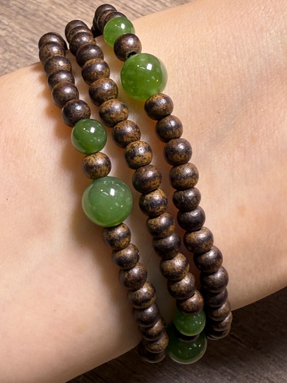 俄羅斯冰種和田玉,四粒8+四粒5+配4.6嘉里曼丹三圈