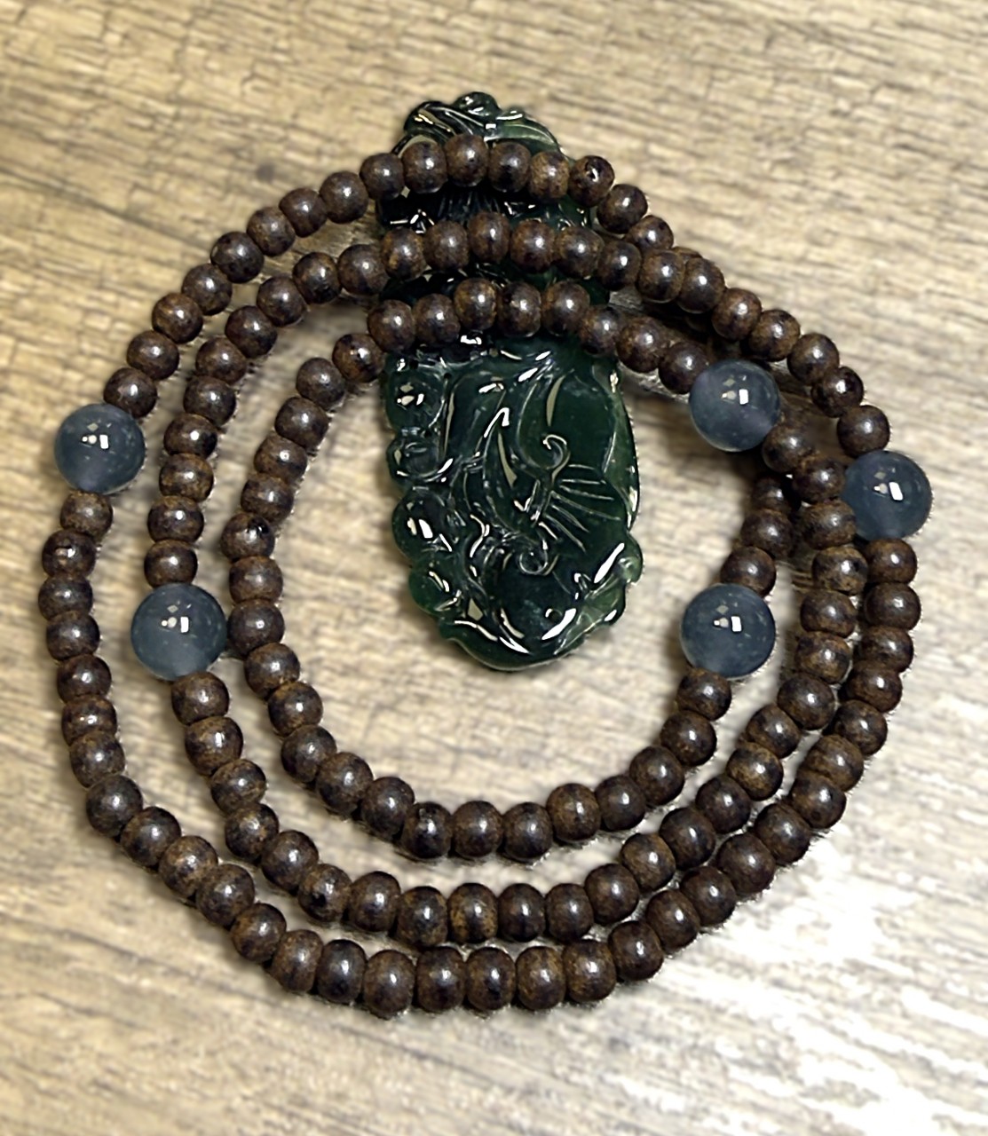 5粒8mm冰藍水帶紫翡翠配4.6mm加里曼丹沉香