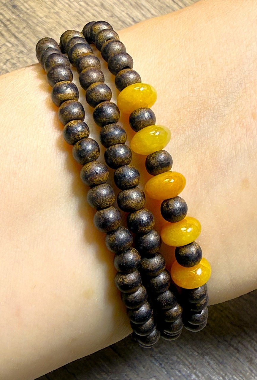 5粒古玉黃翡配4.6加里曼丹沉香三圈