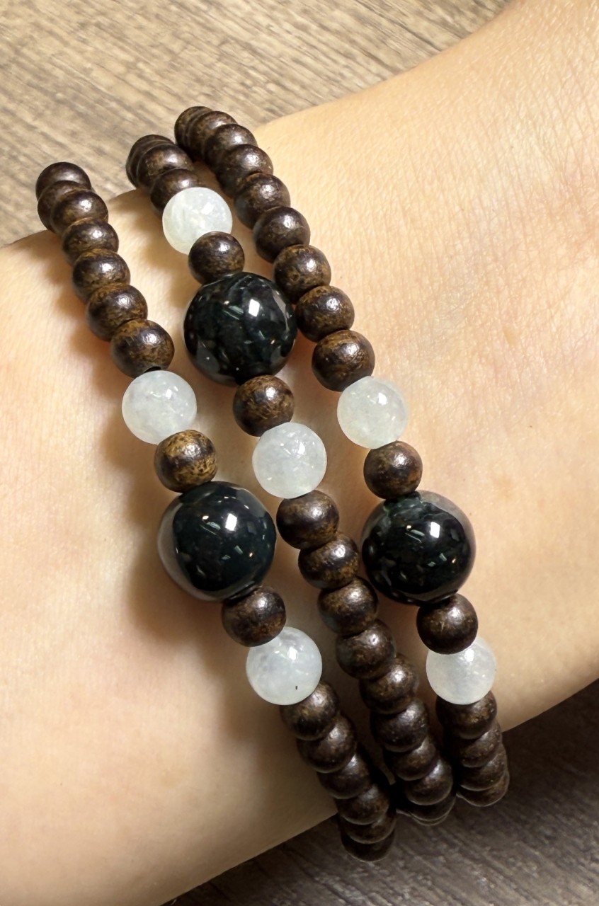 三粒8+墨翠襯六粒5+白翡翠配4.6mm加里曼丹沉香