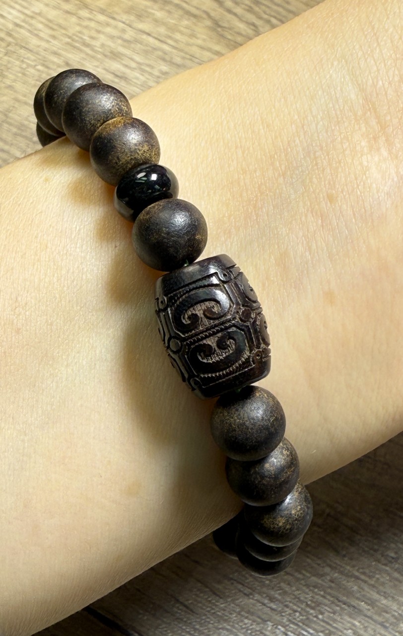 如意紋黑檀木配1粒8mm墨翠,8+加里曼丹沉香