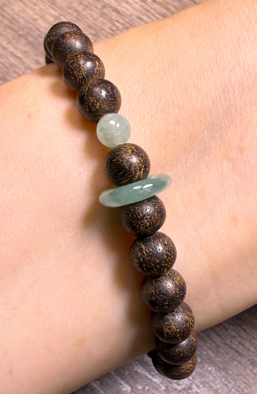 平安扣翡翠襯上1粒5.6mm翡翠配加里曼丹沉香