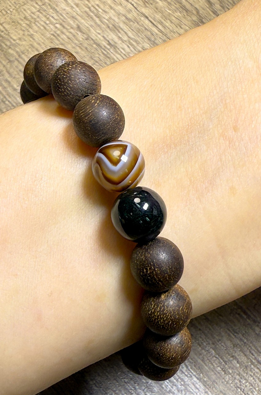 條紋瑪瑙+墨翠配9+巴布亞沉香