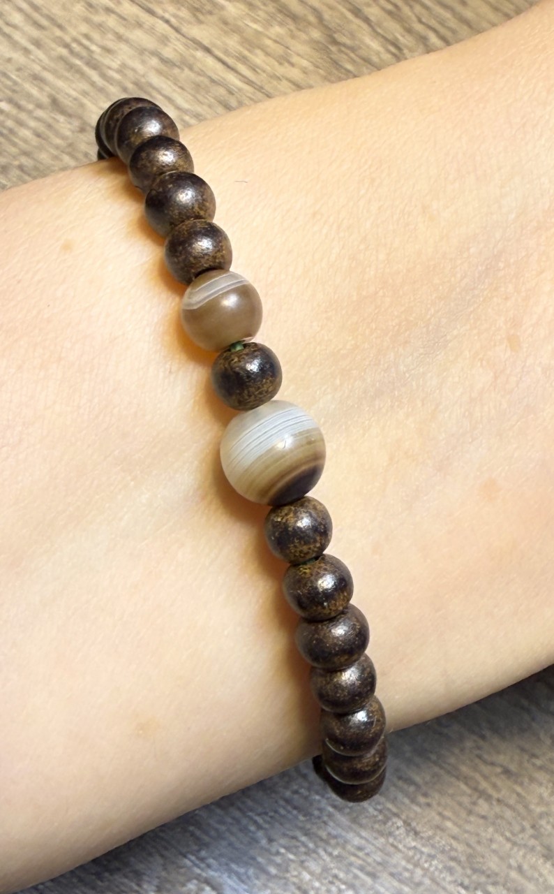 一粒8+,一粒6+條紋瑪瑙配5.6mm嘉里曼丹沉香