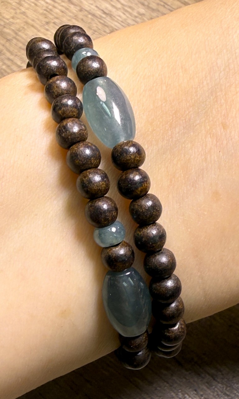 2粒欖形,2粒算盤珠翡翠配5+加里曼丹雙圈