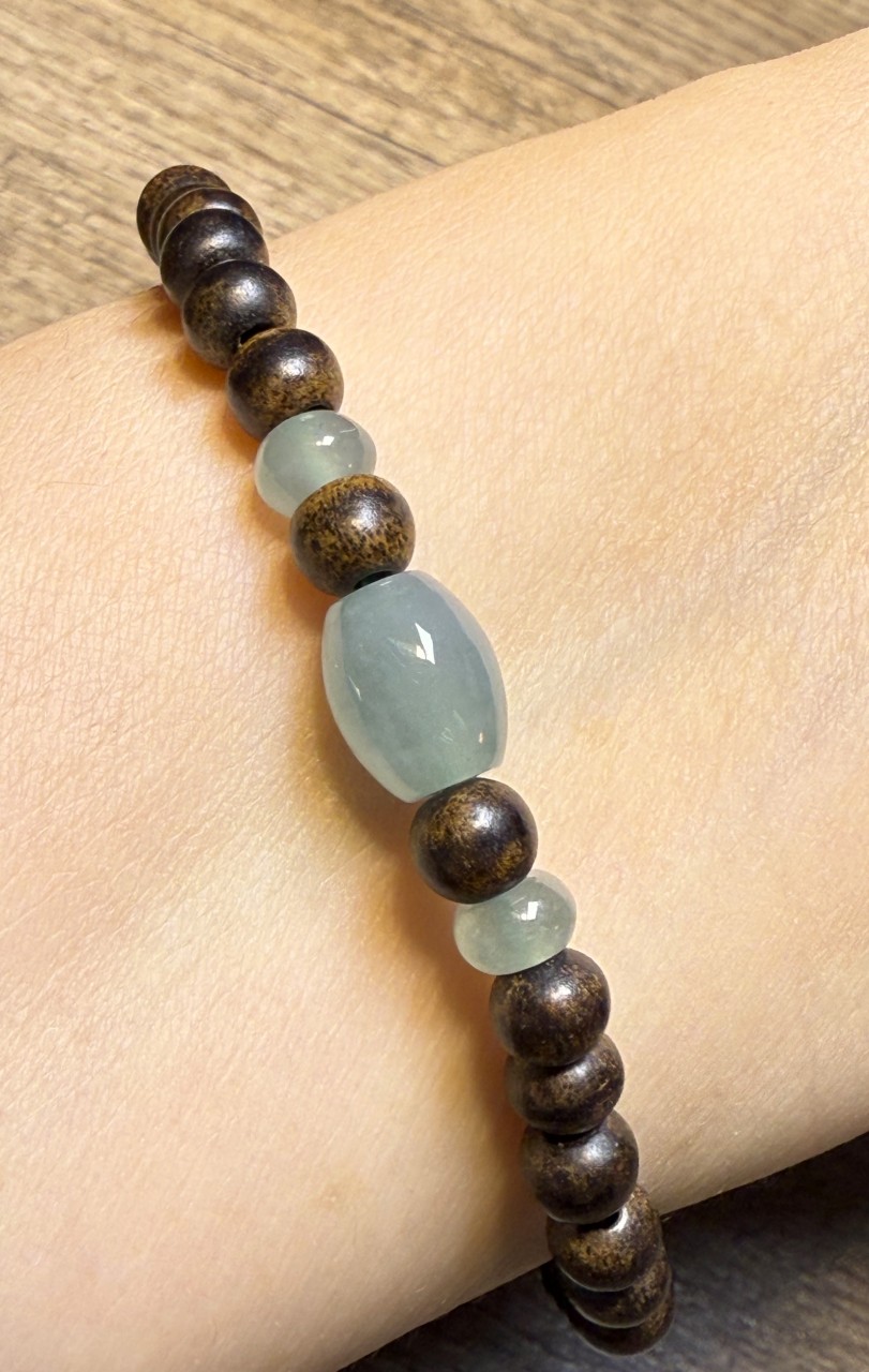 欖形藍翡配兩粒5.6半圓藍翡,5.6mm嘉里曼丹沉香