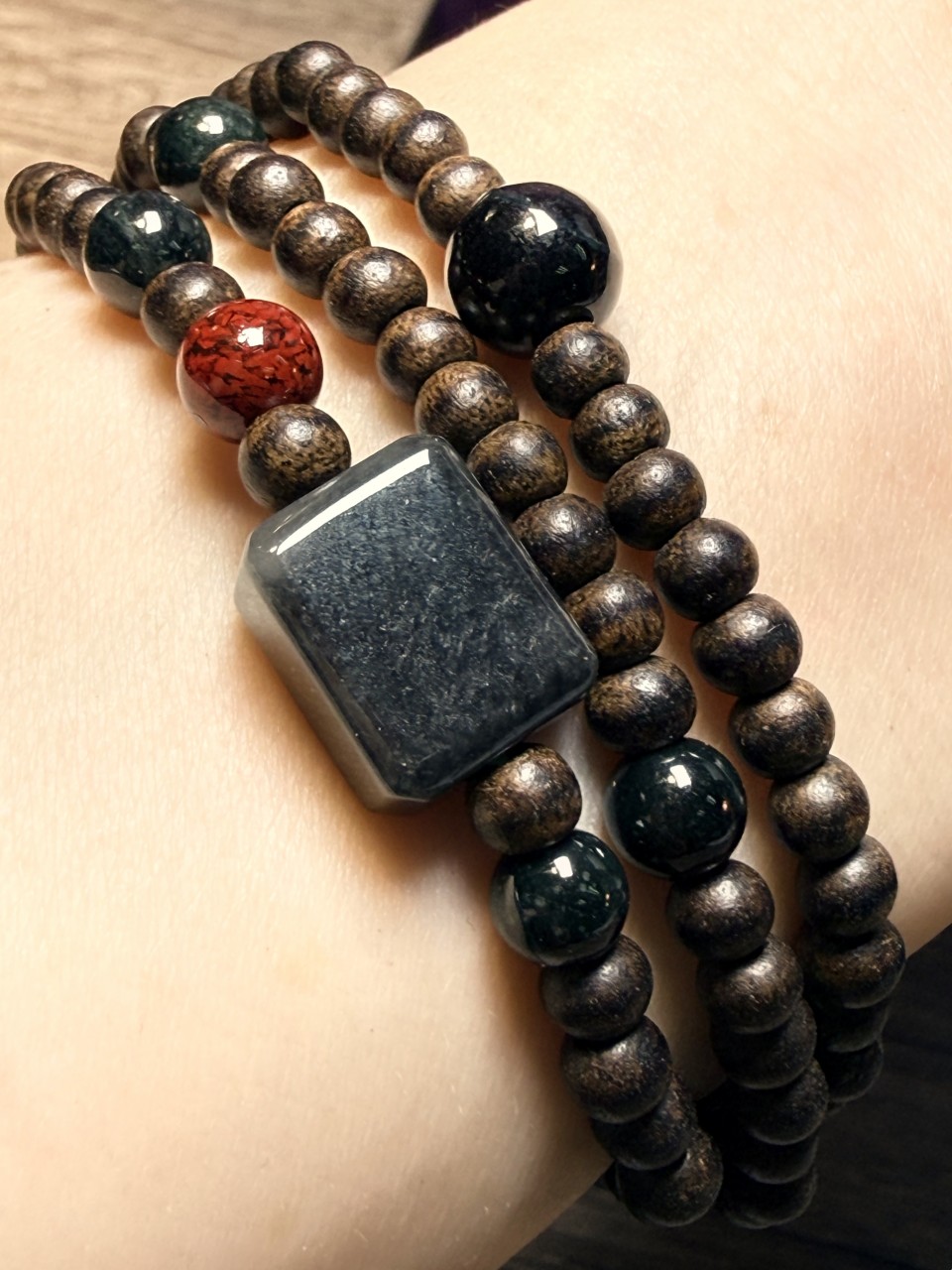 無事牌墨玉襯1粒6mm墨翠襯1粒6.4mm原礦硃砂配4.6mm加里曼丹沉香三圈