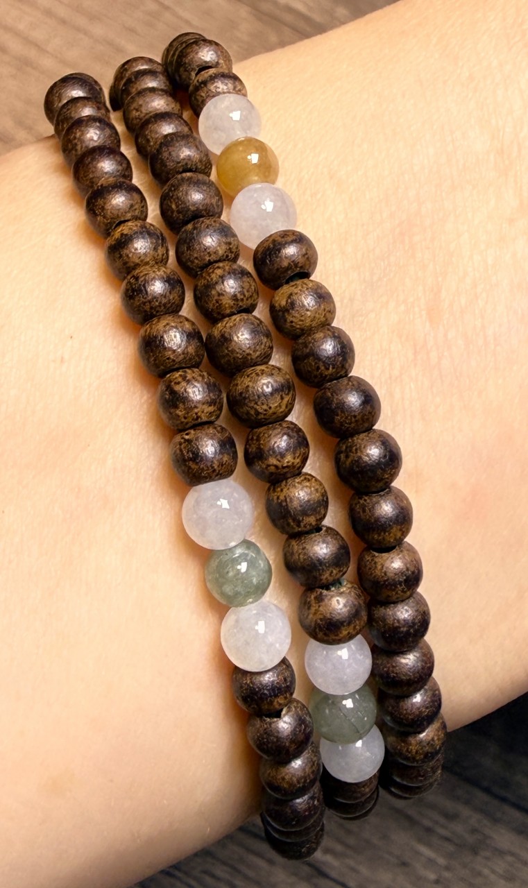 15粒翡翠組成五組特色翡翠配4.6mm加里曼丹沉香三圈