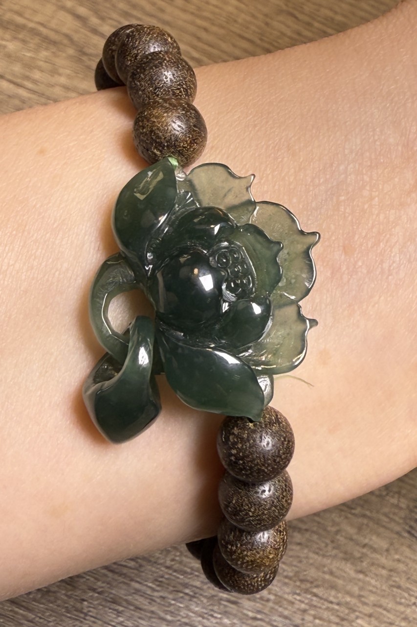 立體花吊飾冰種藍翡翠配加里曼丹沉香
