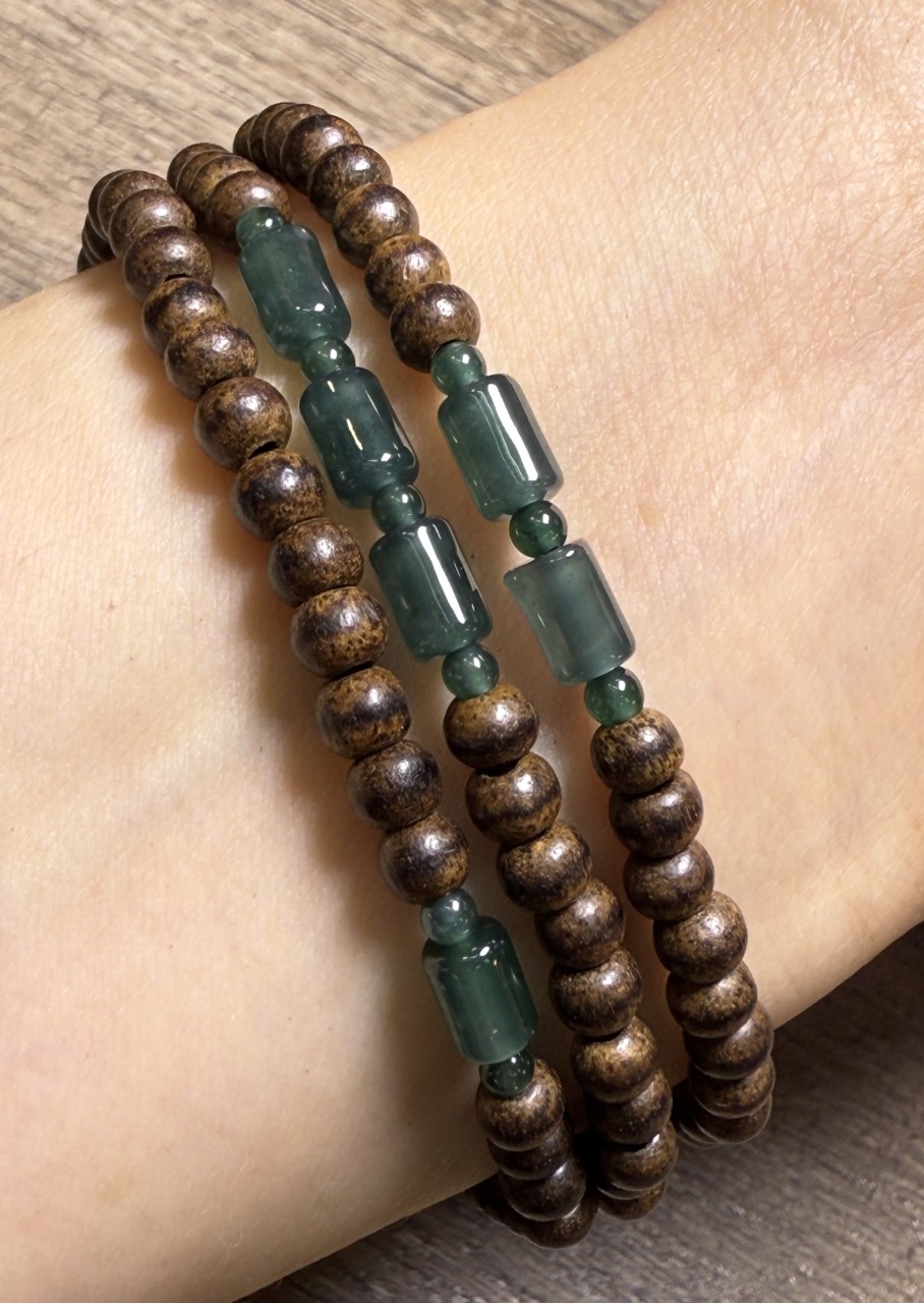 非常通透綠色翡翠配4.6mm加里曼丹沉香三圈
