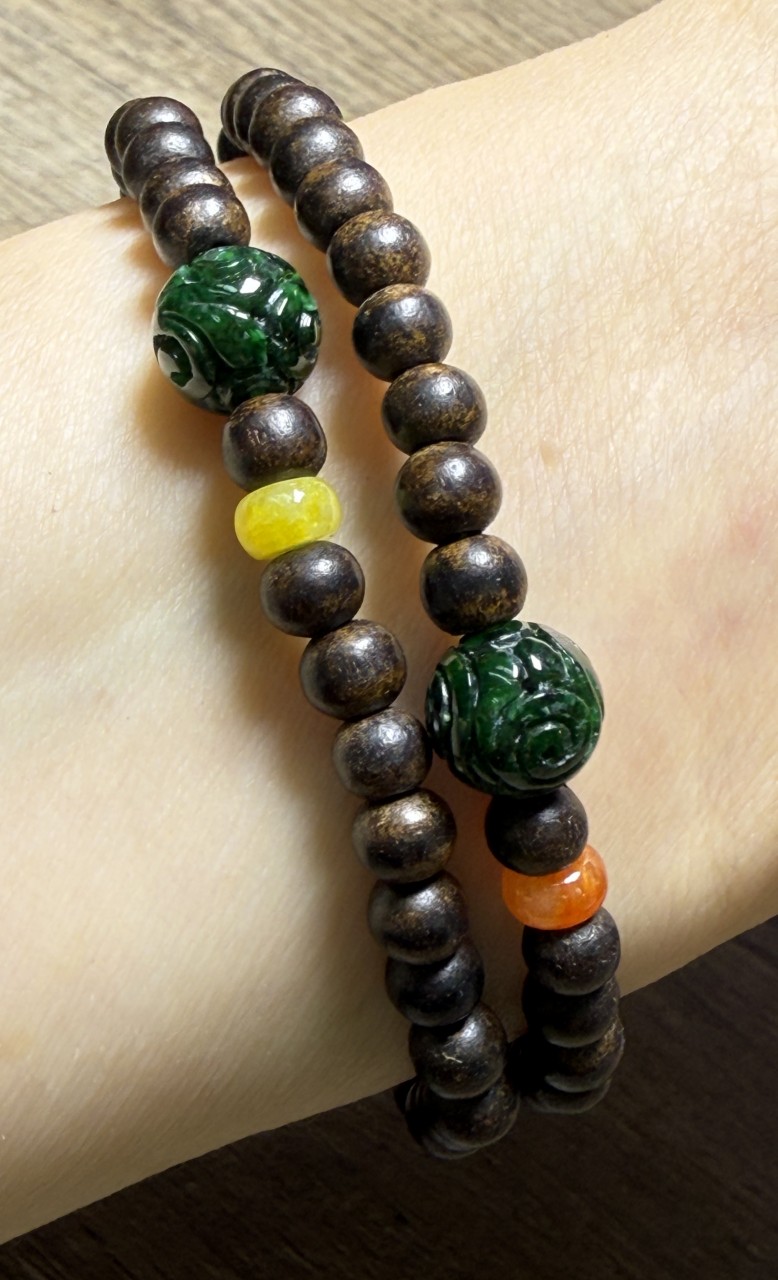 繡球花綠翡翠配1紅1黃翡翠,5.6mm加里曼丹雙圈