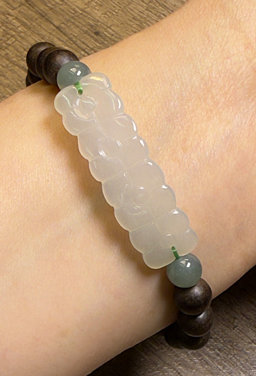 花手牌襯兩粒6.8mm藍水翡翠,配7+加里曼丹沉香