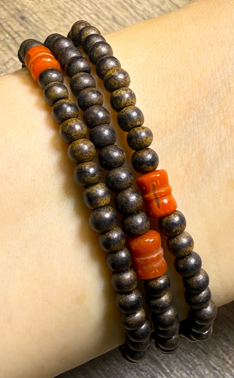 5粒藍紅瑪瑙配4.6mm加里曼丹沉香三圈