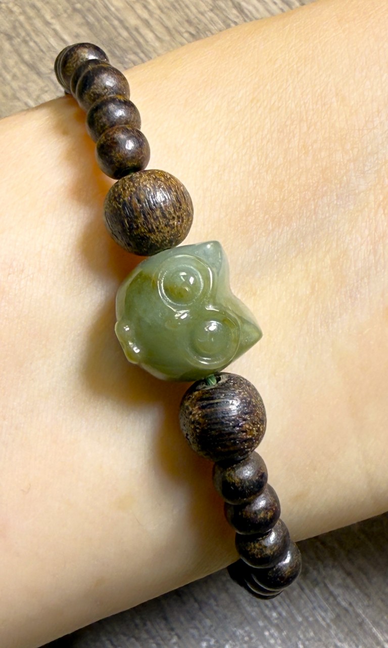 貓頭鷹翡翠+2粒8+珍藏級配5.6mm加里曼丹沉香
