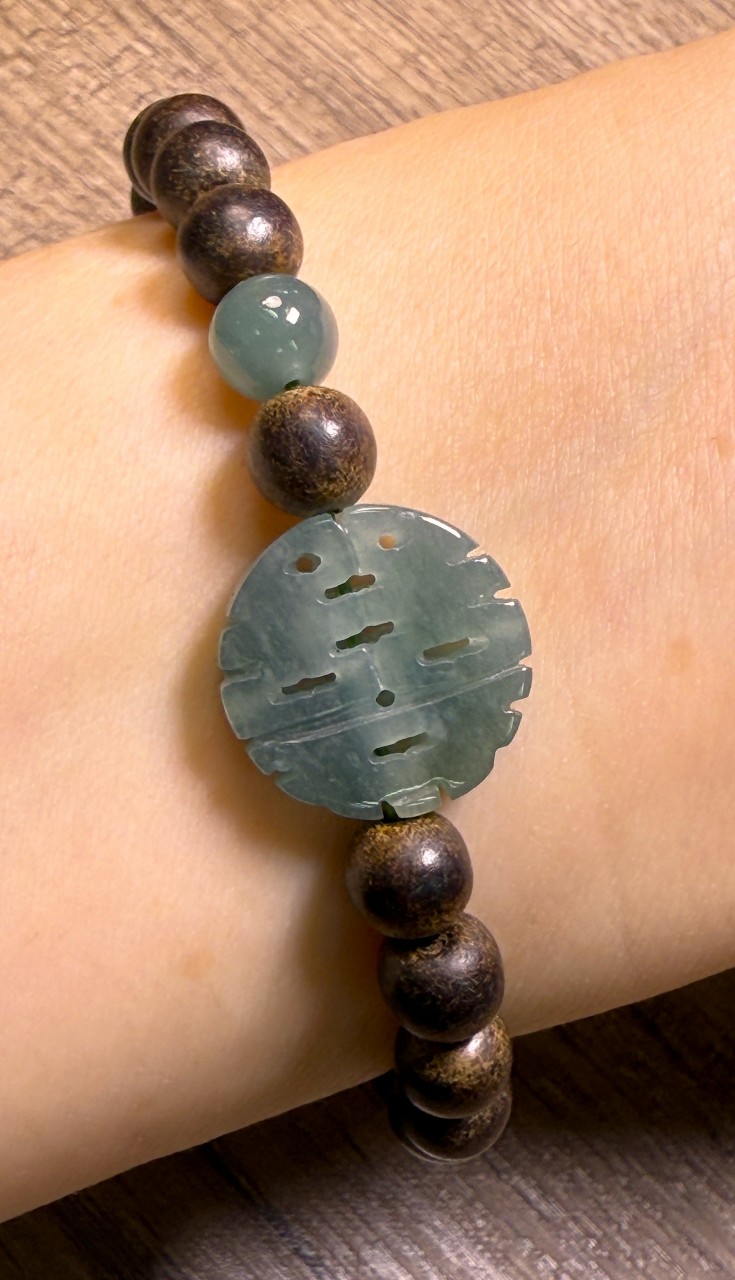 雙面囍字翡翠加1粒7+藍翡翠配7+加里曼丹沉香