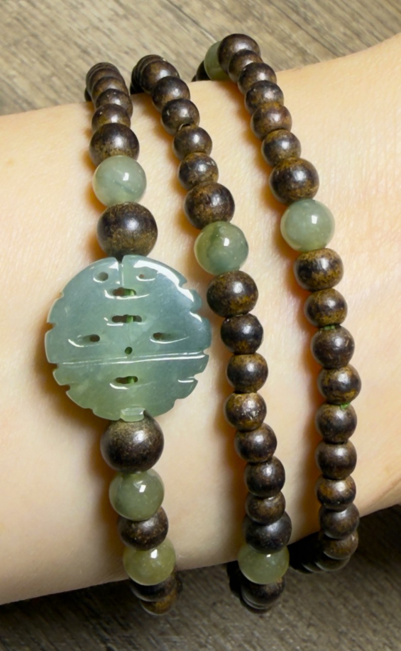 雙面囍字黃翡翠襯5.9mm黃翡翠配4.6mm加里曼丹沉香三圈