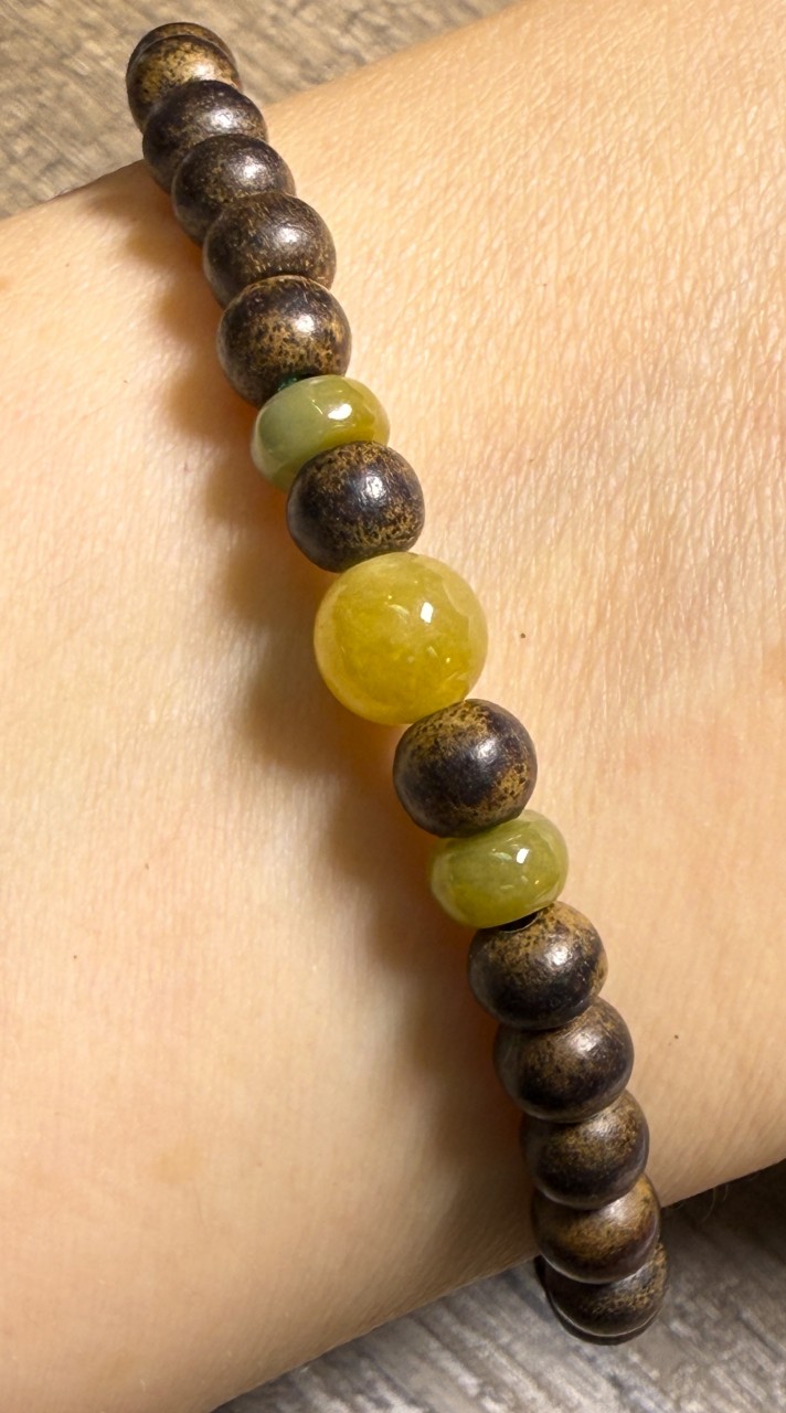 1粒6.8mm黃翡翠襯2粒5.7mm算盤珠配5+加里曼丹沉香